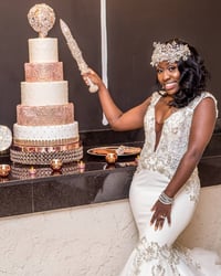 This 5 in (diameter) Glam Cake Ball Topper is sure to be a conversation piece. Ball comes with mounting stick for easy installation. Available is Rosegold and Gold as well. Jewels may vary based on inventory. All Sales are final. Ships within 2-3 weeks, need it faster please contact us for rush delivery before ordering.